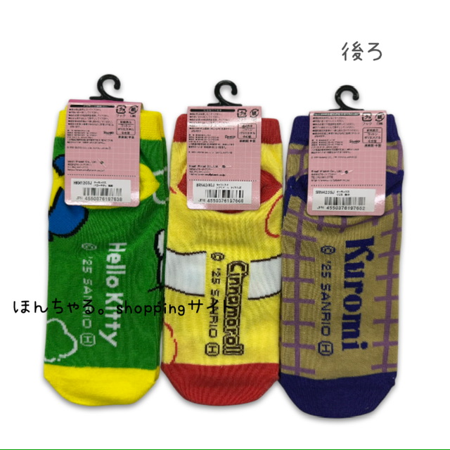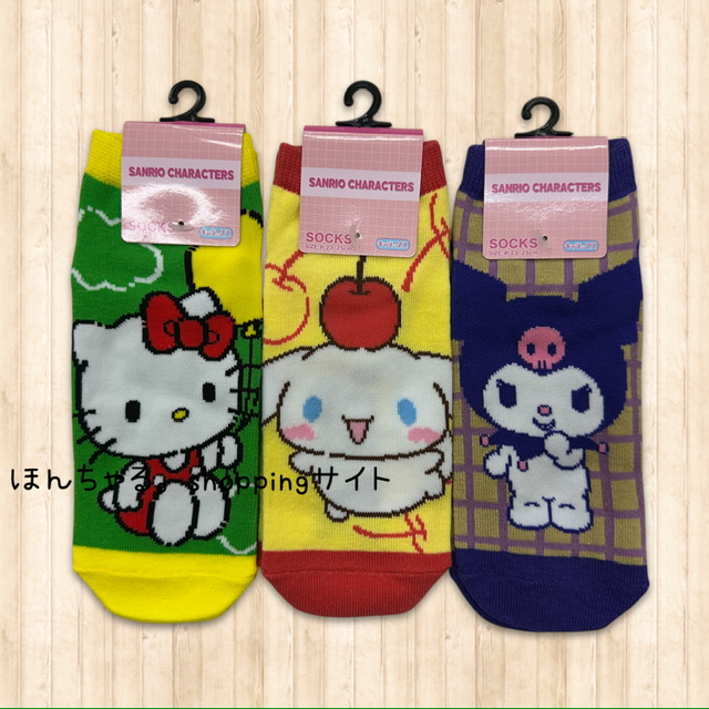 サンリオ【マイメロディ星・シナモロールさくらんぼ・クロミ格子】大人用ソックス(3足セット)