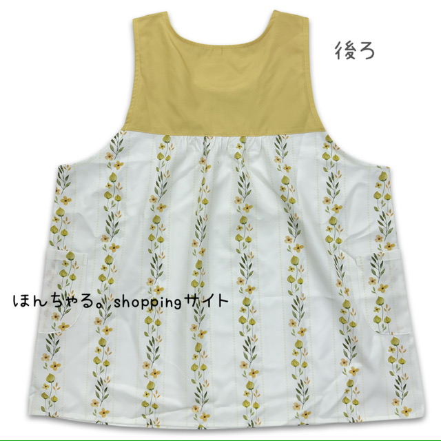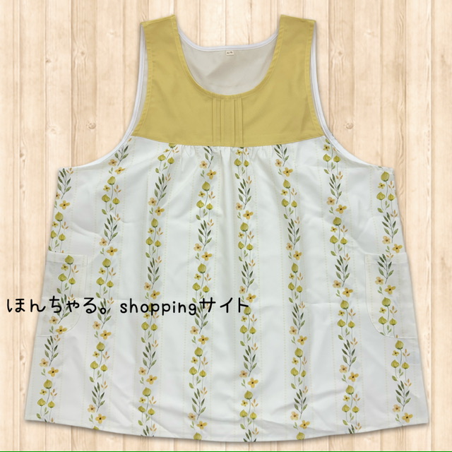 水彩プリントストライプエプロンクリームイエロー×アイボリー【4L-5L】【53】