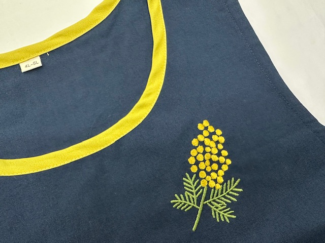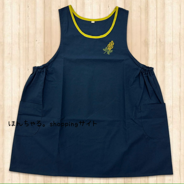 ミモザ刺しゅうアクセントエプロンネイビー【4L-5L】《プチプライス》【45】